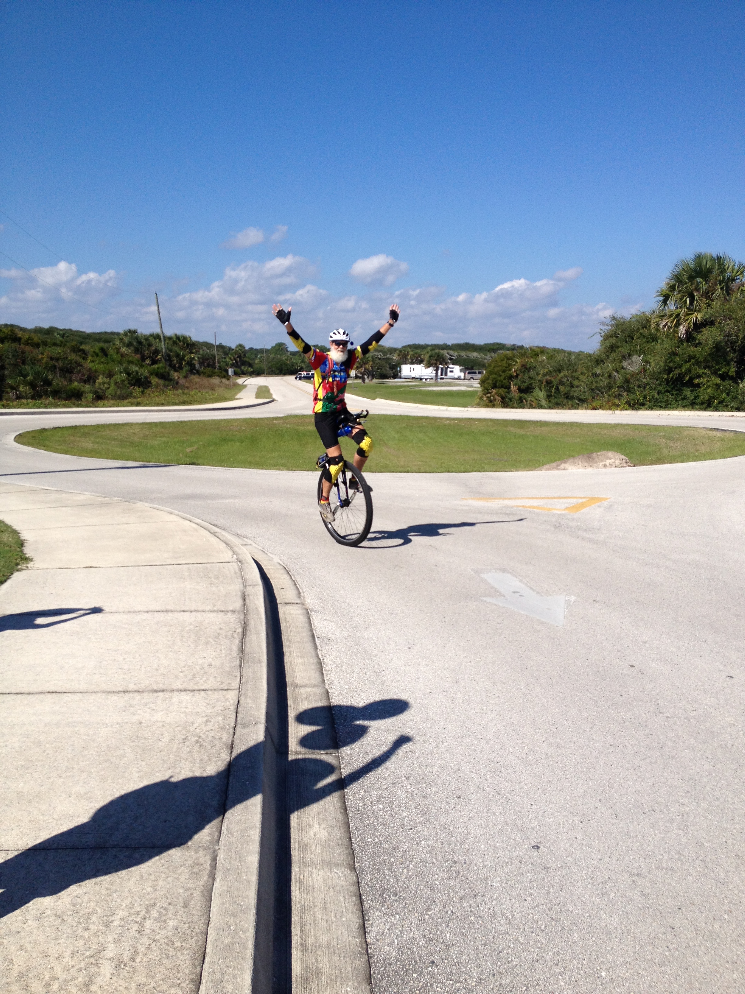 Some of you might be surprised to learn I was not the first to ride a unicycle across the country, and I certainly won’t be the last, but as far as I know and until I am told differently I believe at 58 years old I may be the oldest. You may also be surprised to learn I was the fourth person to cross the USA by unicycle this summer. Cary Gray recently crossed from East to West and is headed down through Mexico and beyond. http://caryoutthere.com/