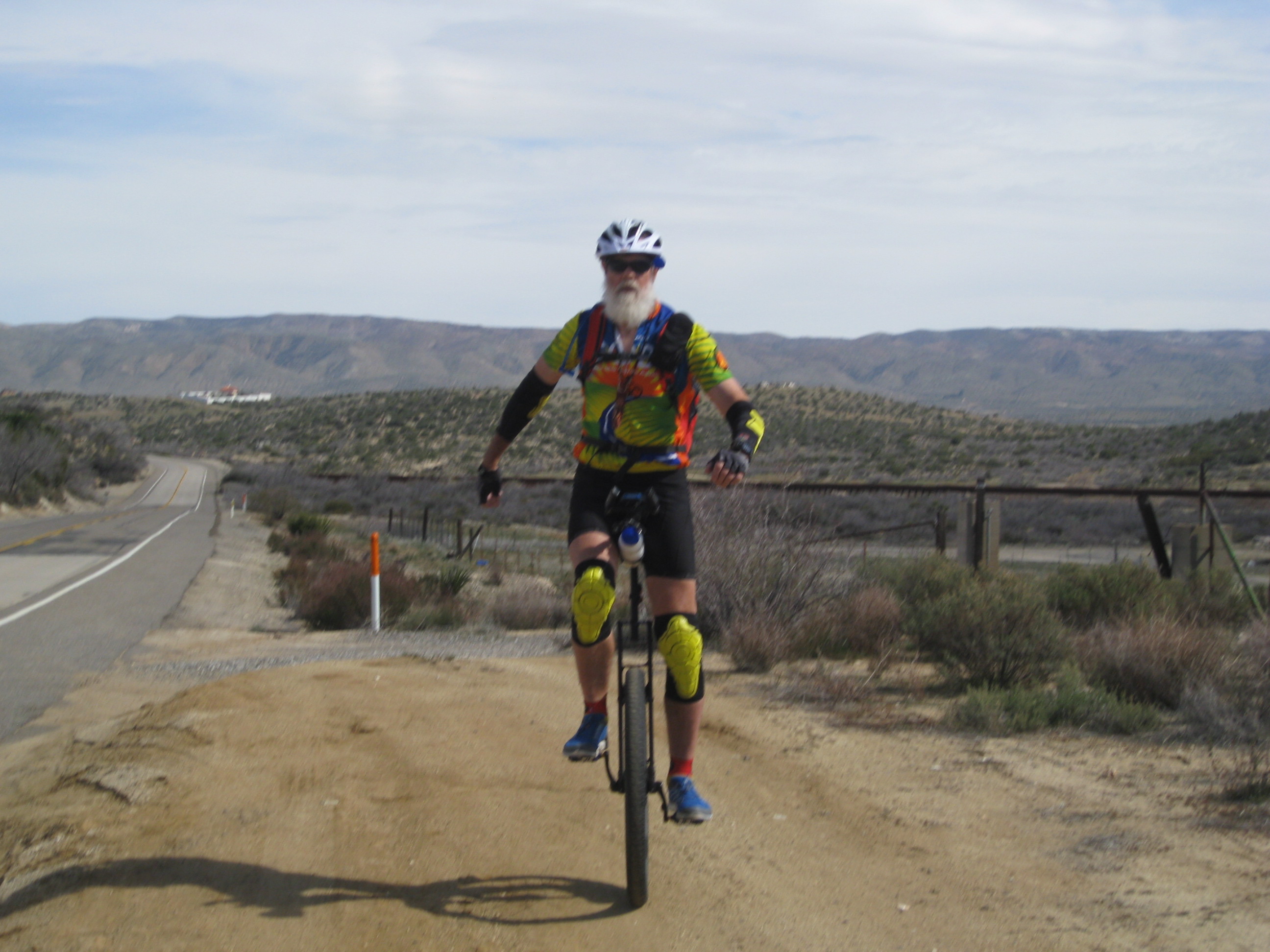 - My unicycle taking a rest on day 4 before descending into Alpine CA