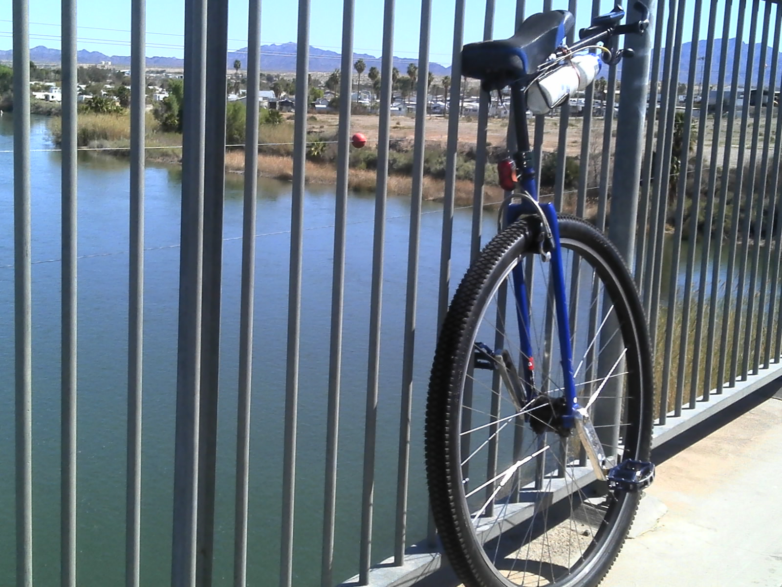 Crossing Colorado River on a pedestrian bridge into Arizona