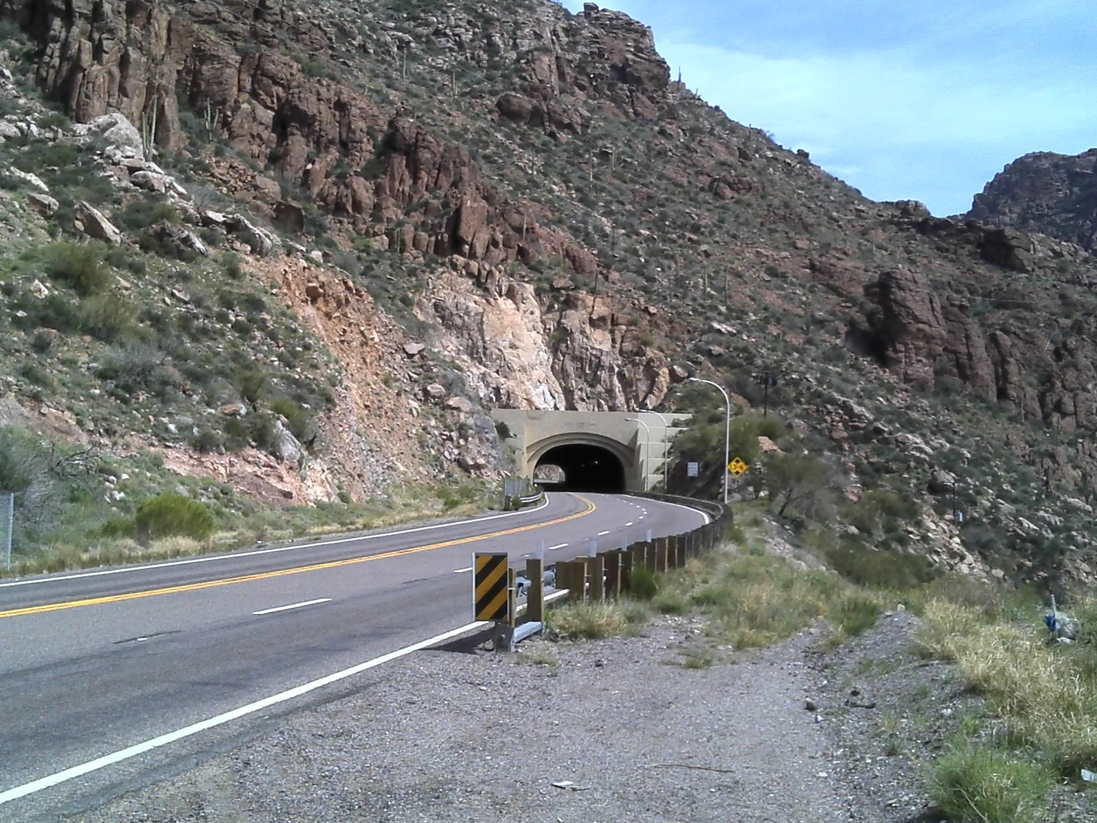 Climbing the hill. I gradually climbed into Superior then the route took off the gloves. Much of the time the road up the hill had no shoulders. When I came to the tunnel I rode as fast as my heart and legs would go. I was passed by 6 vehicles while riding through all but a motorcycle moved to the other lane for me.