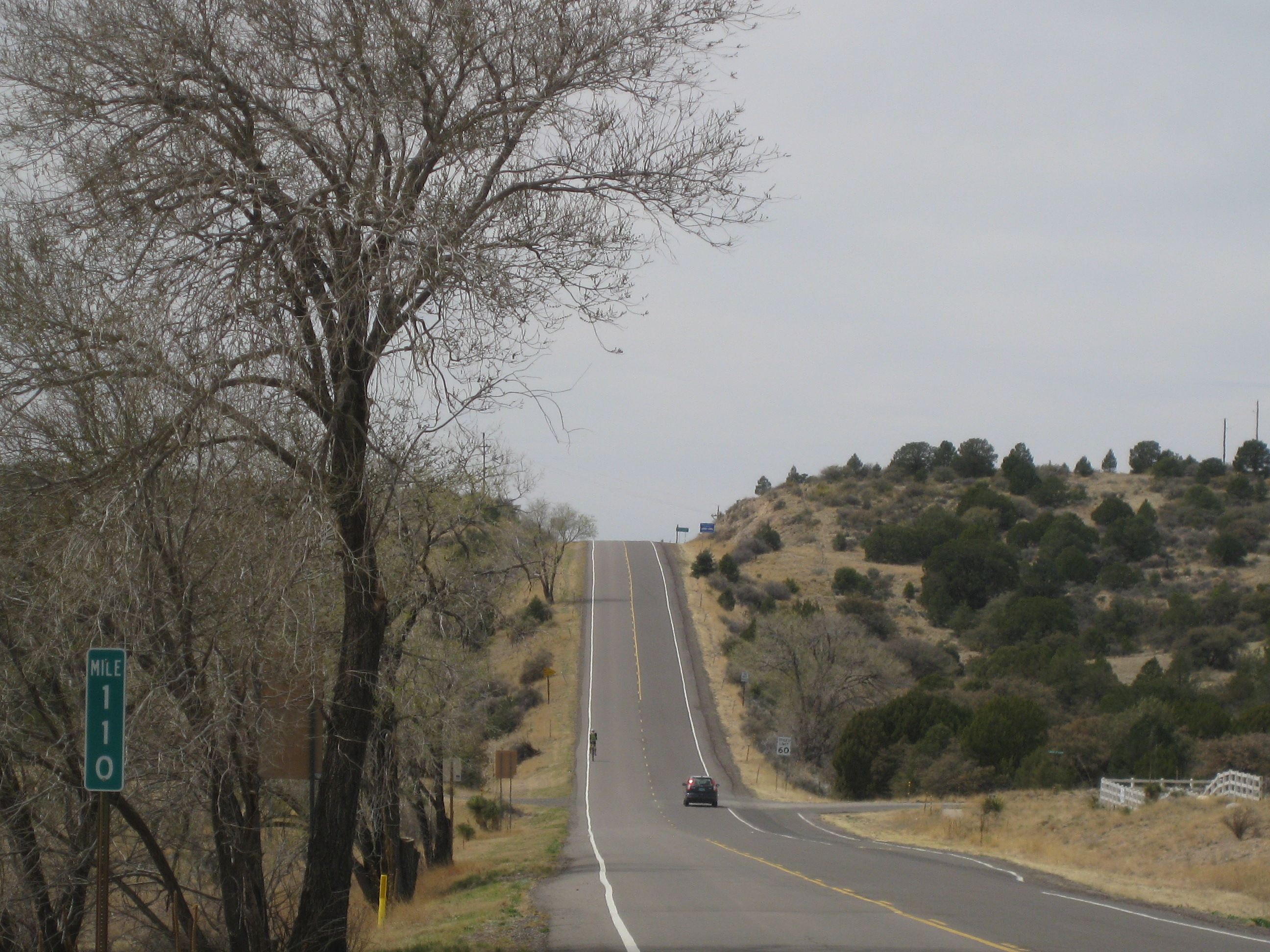 The breeze was light and mostly on my tail. I continued on Route 180 on relatively flat road, then I started to climb gradually. Then the climbing increased but the climbs were never as steep or as long as the climbing two days ago. Little by little I kept stair stepping my way up up up.
