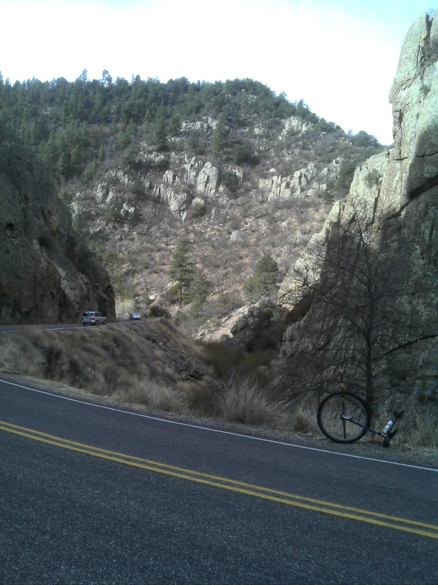 After 12 miles of ascending 2600 feet from where I started in the morning I reached Emory Pass at 8228 feet. The price of admission was high but some of the views were the most remarkable of the ride so far. At one point rode through a canyon so narrow I could have easily thrown a stone from one side to the other.